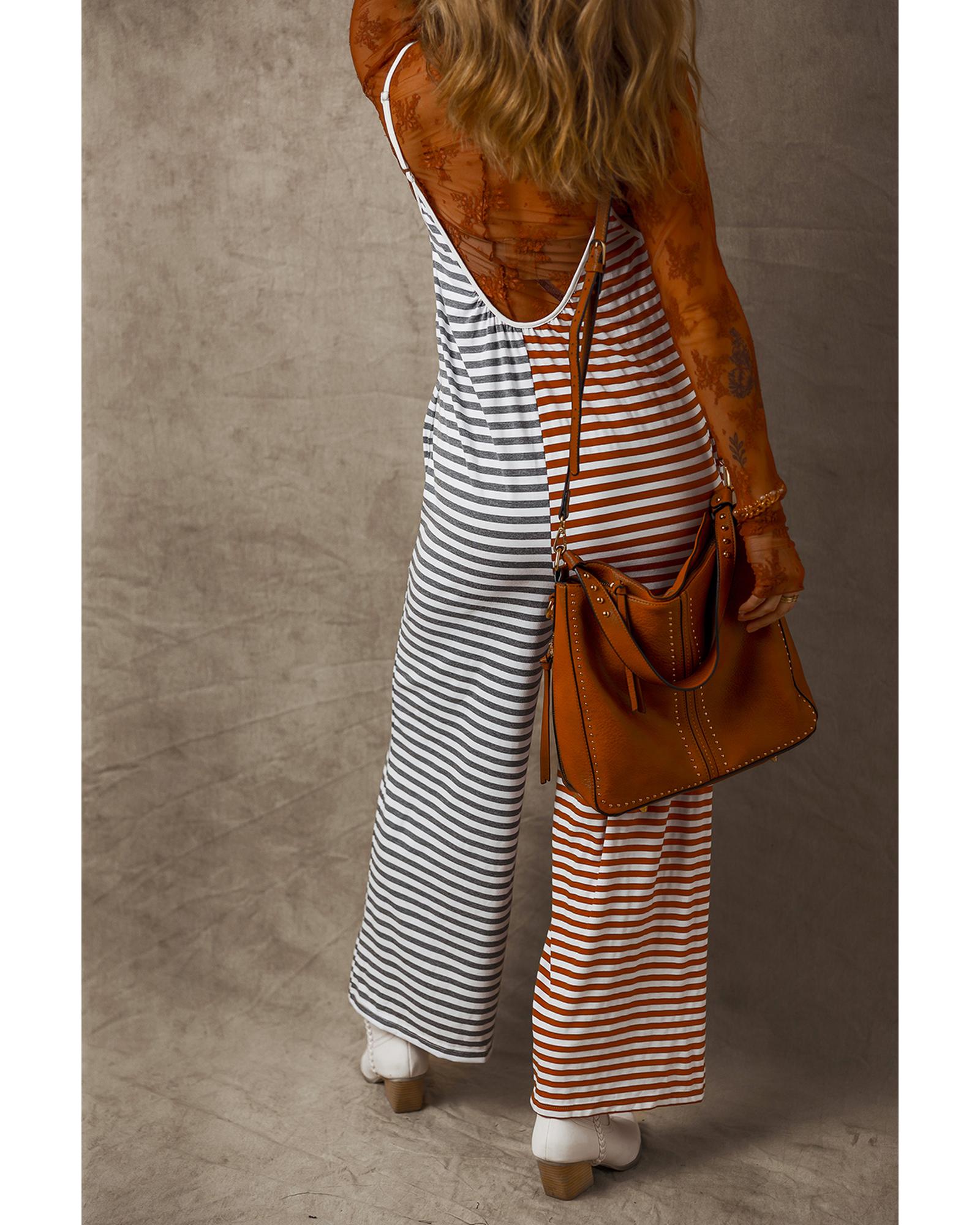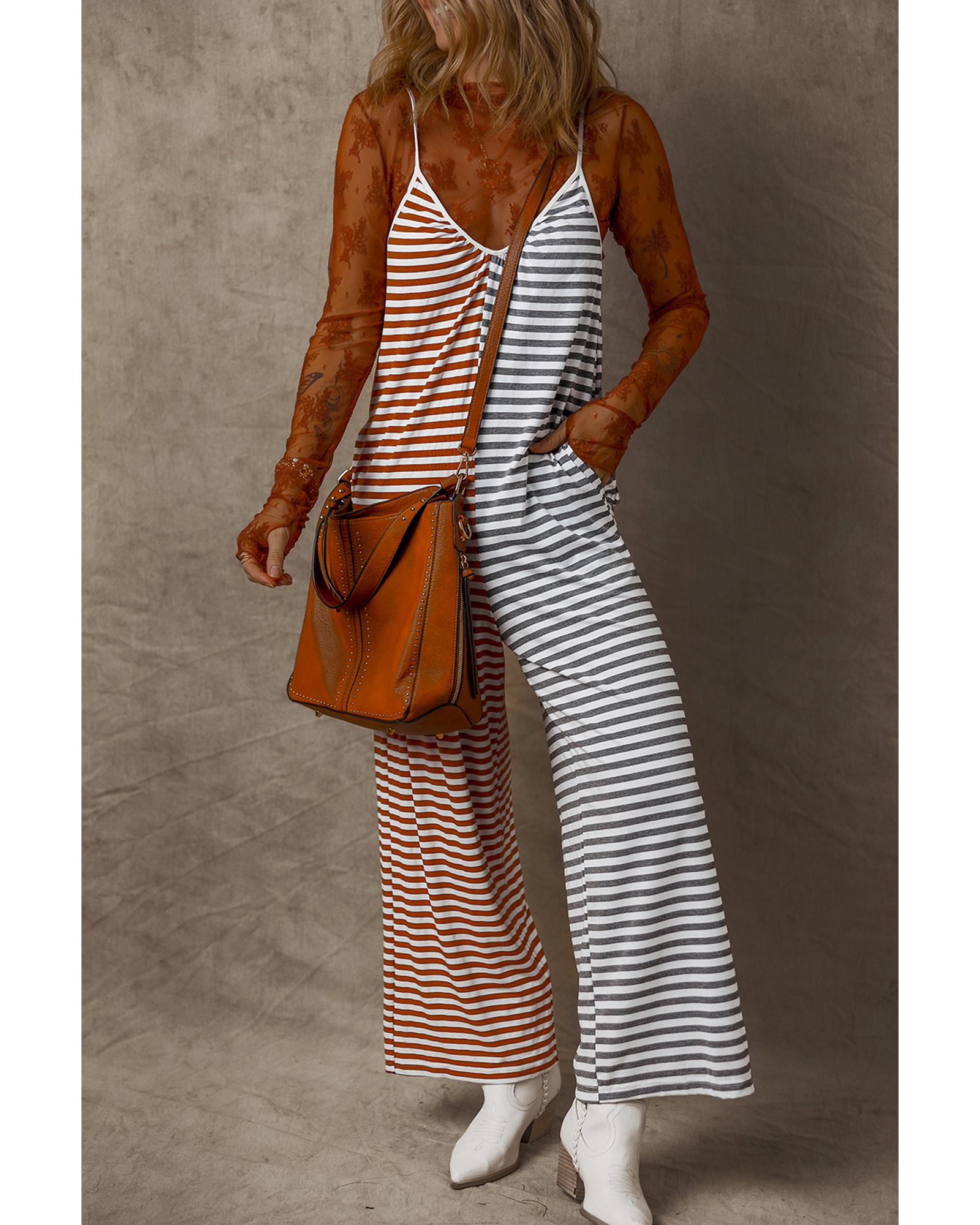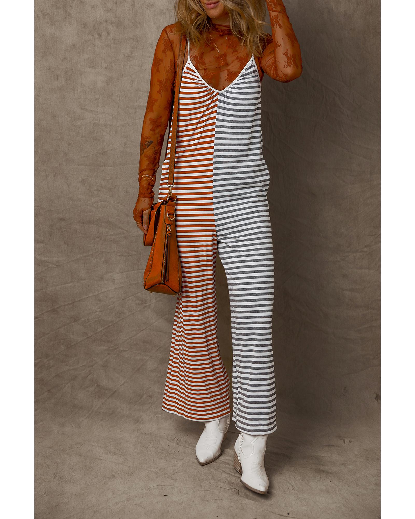 Yellow Stripe Two Tone Contrast Spaghetti Strap Backless Overall – L