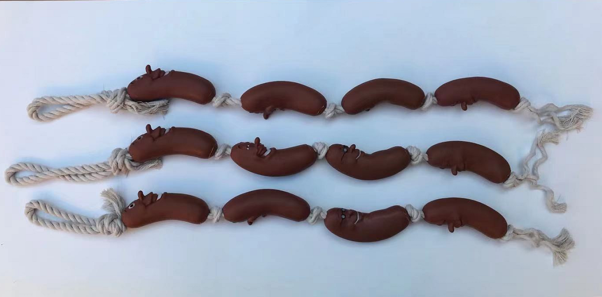 Your furry friends will love our Sausage chain Rope toy, coming in4 Swags.Our product is made for interactive fun between you and your pet.