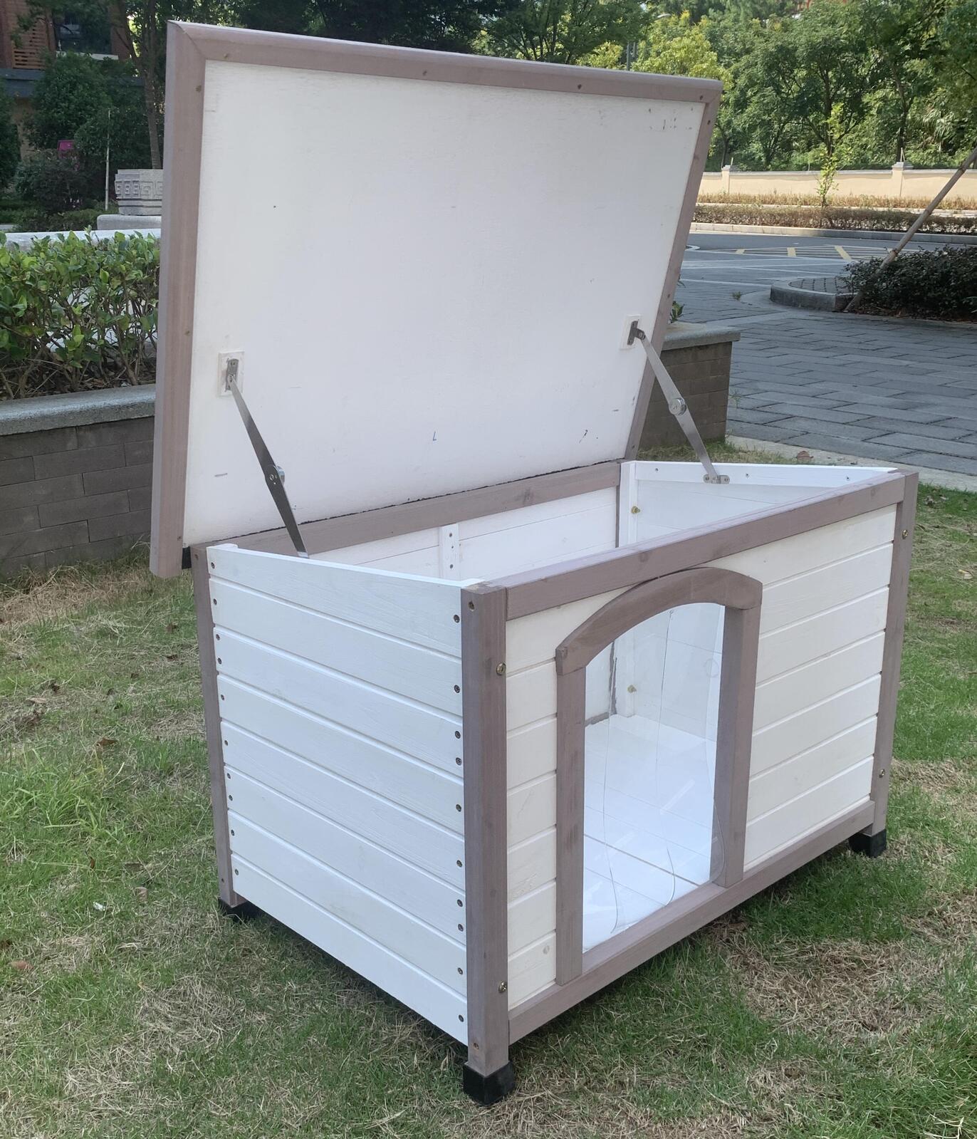 YES4PETS M Timber Pet Dog Kennel House Puppy Wooden Timber Cabin With Stripe White