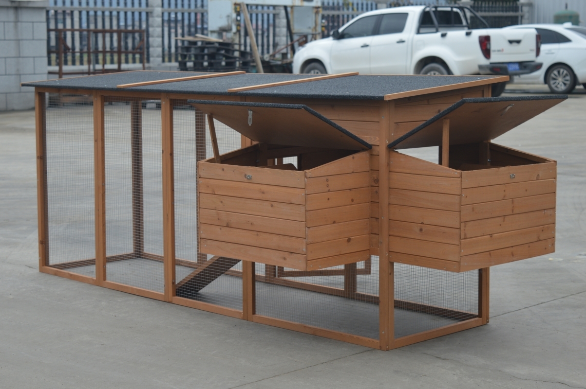 • Integrated nesting box and the roof of the nesting box can be opened for collecting eggs