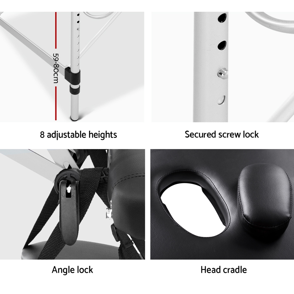 Zenses Massage Table 70cm Portable 2 Fold Aluminium Beauty Bed Black